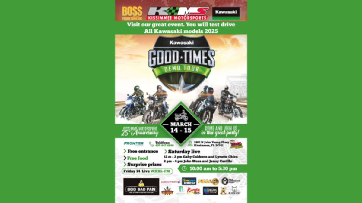 Test drive all Kawasaki 2025 models and come hang out at Kissimmee Motorsports 25th Anniversary!